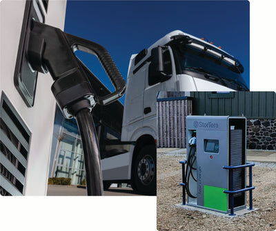Our hybrid chargers use integrated batteries to supplement the grid for high power charging.